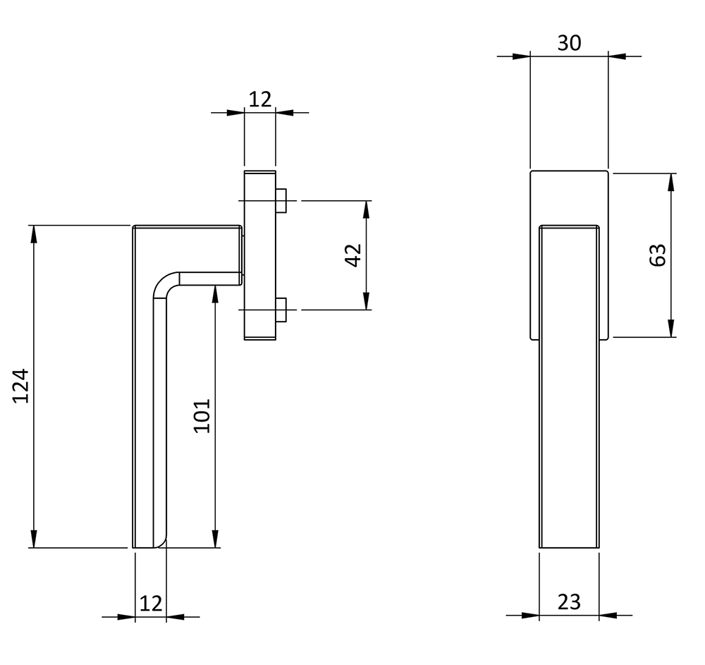 okenní klika hliníková, povrch plast