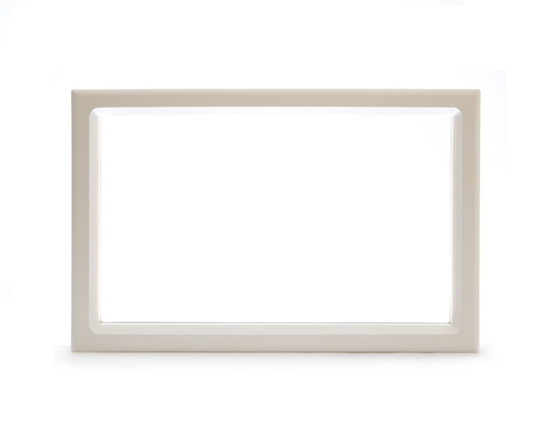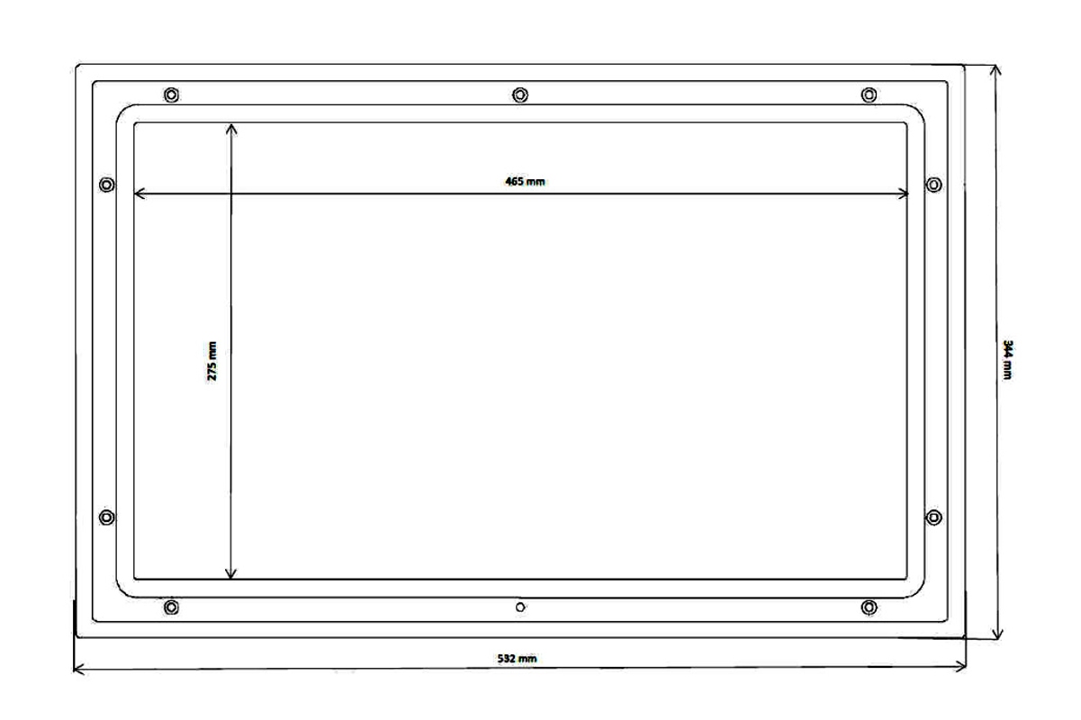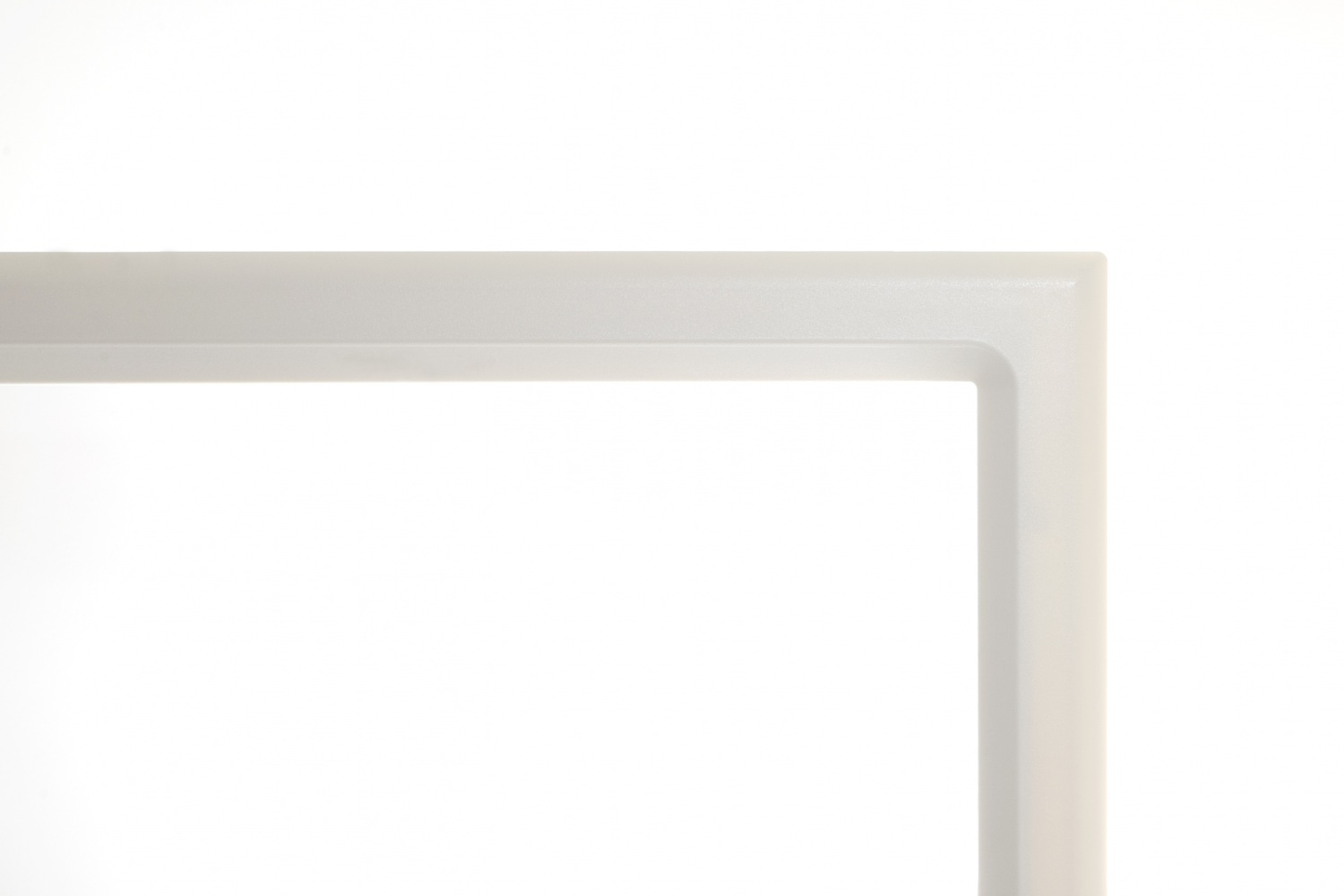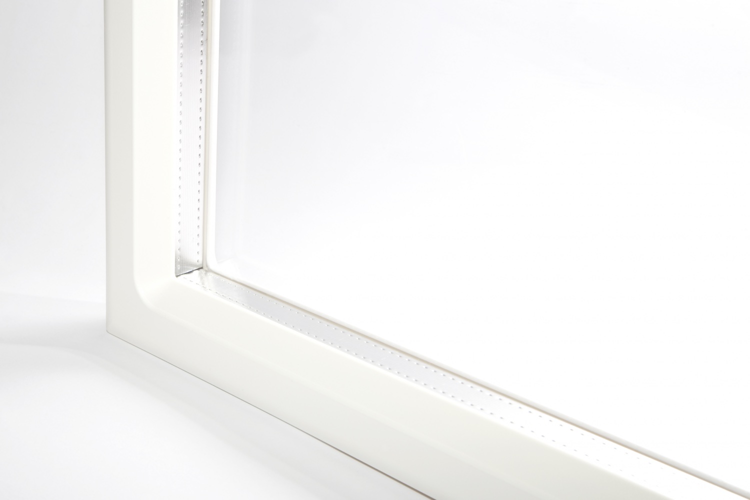 Hranaté okno do vrat s hladkým rámečkem, barva bílá, materiál rámečku plast, vnější rozměr 532 x 344 mm, pro sekce tl. 40 - 45 mm, dvojité prosklení. Velikost výřezu 510 x 320 mm. Vnější rám opatřený těsněním je vhodný pro plochý montážní povrch s nerovnostmi do 1 mm. Pro větší nerovnost panelu se doporučuje použít dodatečné těsnění.