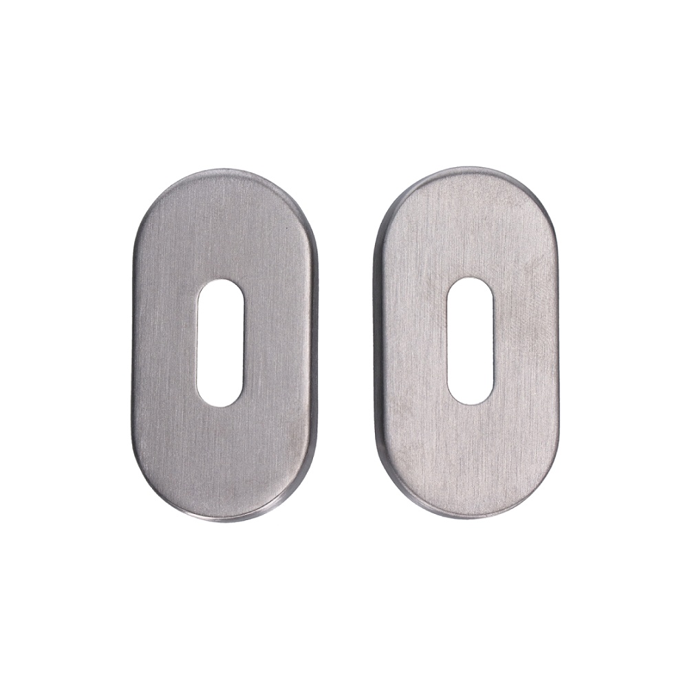 EB1-KGS2N - oválný nerezový štítek 62 x 32 mm na zámek pro dozický klíč, broušená nerez K320/AISI304, spodní část nerez, vhodné i do venkovního prostředí. Balení obsahuje 2 ks rozet + příslušenství k montáži.