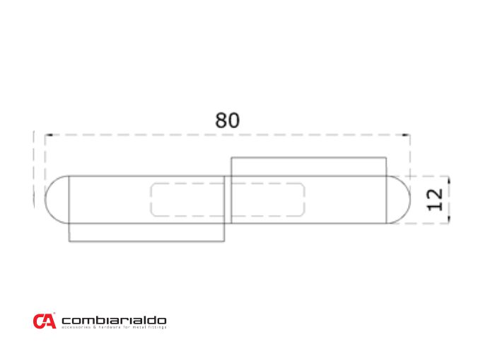 C109IX/80 - nerezový pant Combi Arialdo 80 x 12 mm dvoudílný, navařovací, pevný, materiál nerezová ocel bez povrchové úpravy, třída AISI304. Určeno pro všestranné využití. Rozměry viz technický nákres.