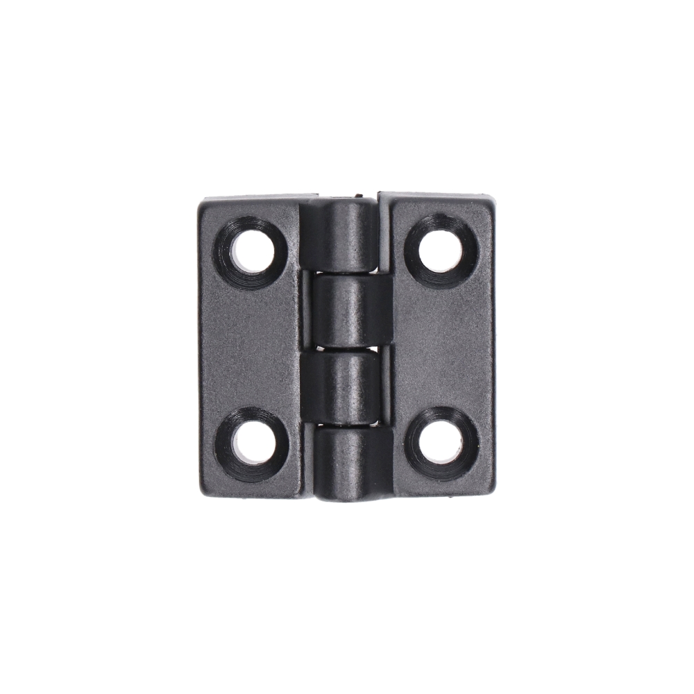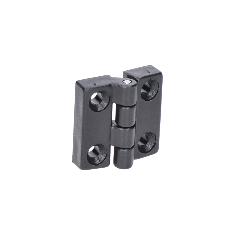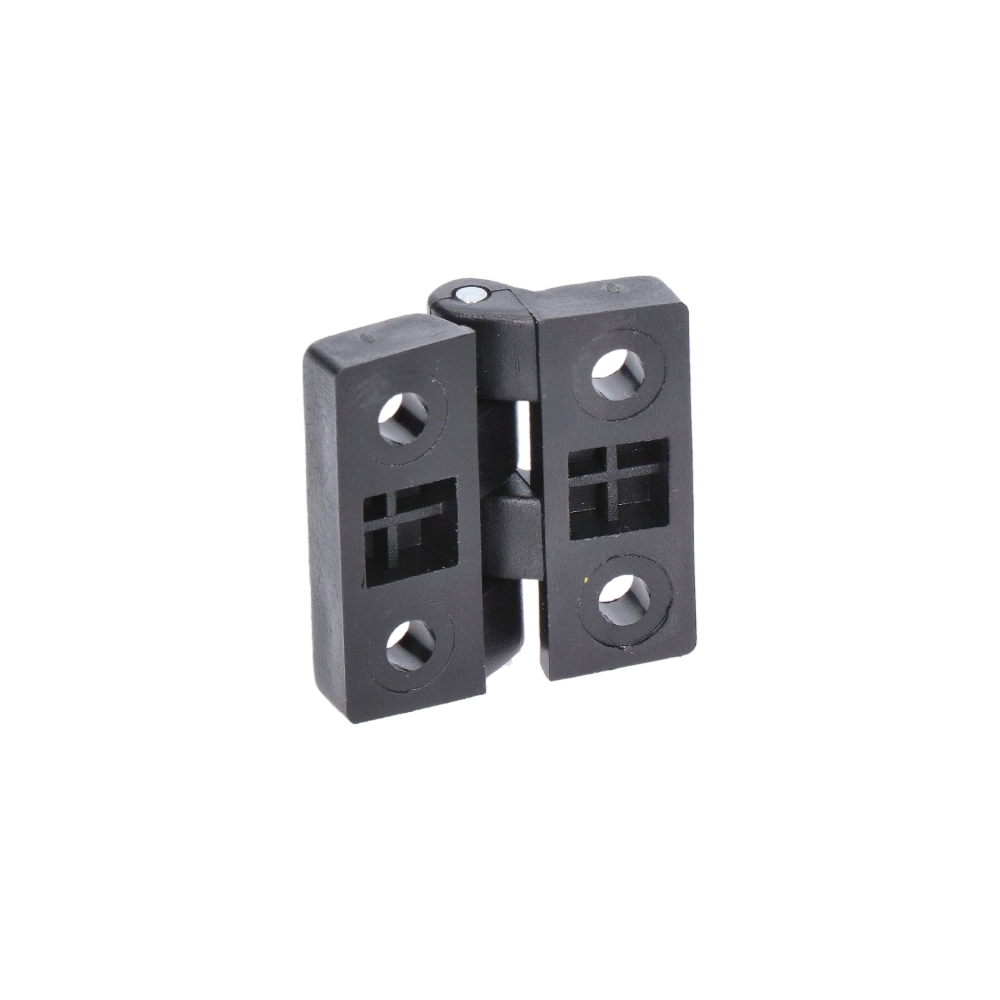 Nylonový dveřní univerzální pant se zahloubenými otvory pro uchycení, rozměr 30 x 30 x 6 mm, otvory ø 4,5 mm.