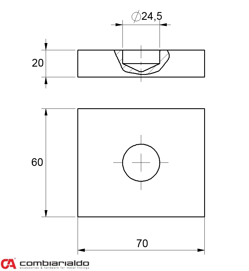 C349/24 - navařovací spodní závěs od předního italského výrobce Combi Arialdo. Bez povrchové úpravy. Kombinace se závěsy C857, C856, C850, C855, C848, C845, C880, C378, C377, C379, C376, C375.