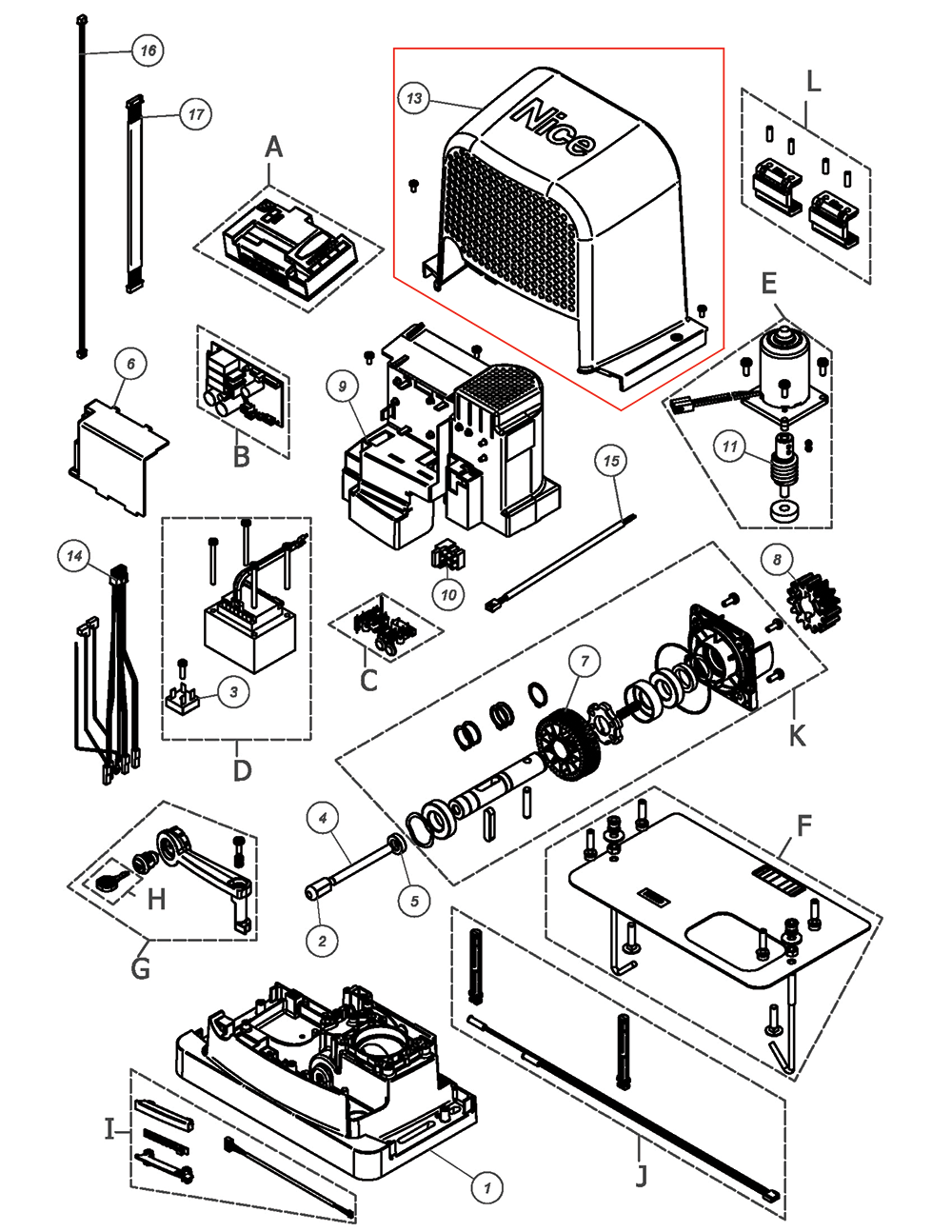 PD2123B0002 - vrchní kryt motoru pro pohony Nice RBS400, RBS600, RBS600HS. Produkt na objednávku,...Ukaž celý popis >