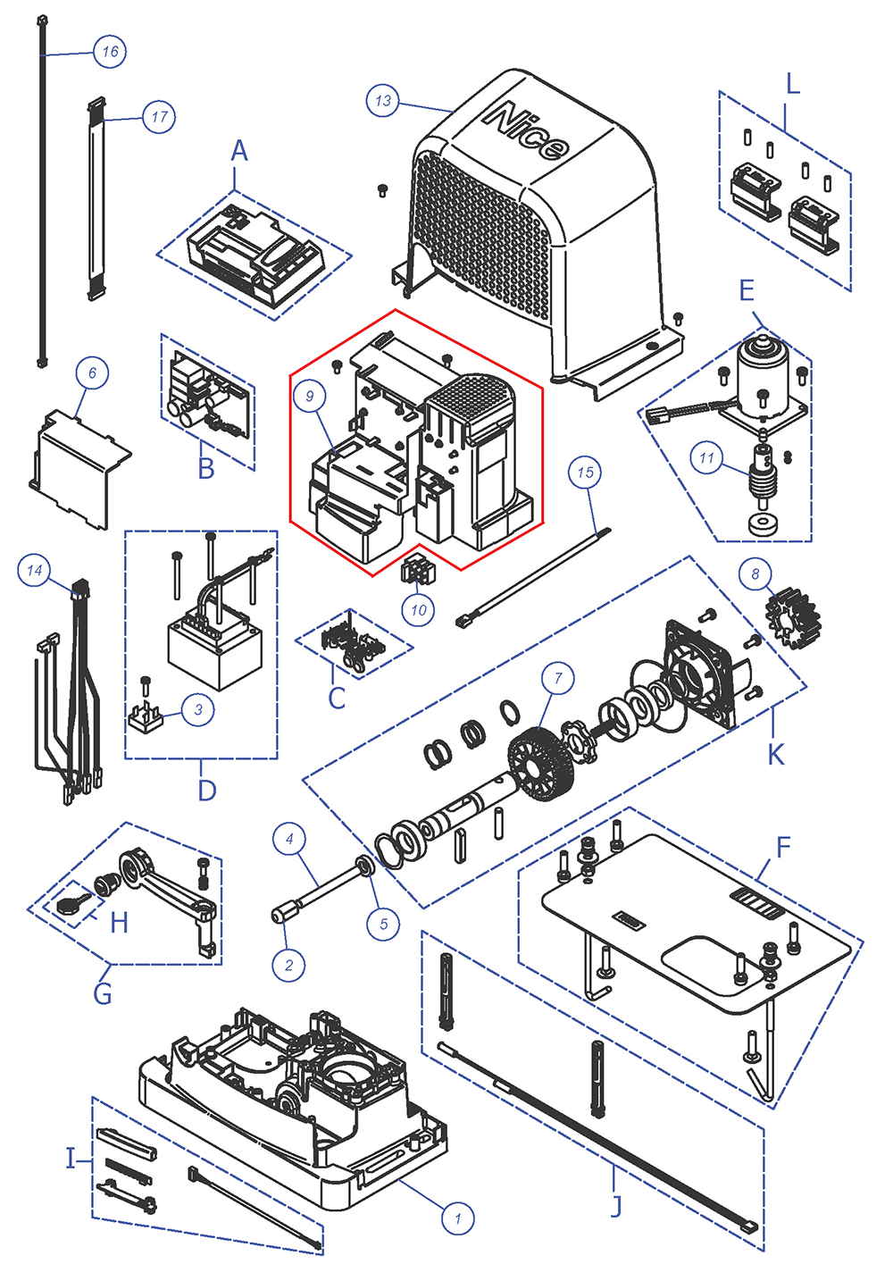 PD2125A0002 - držák řídící jednotky, vnitřní přepážka pro pohony Nice RBS400, RBS600, RBS600HS.
