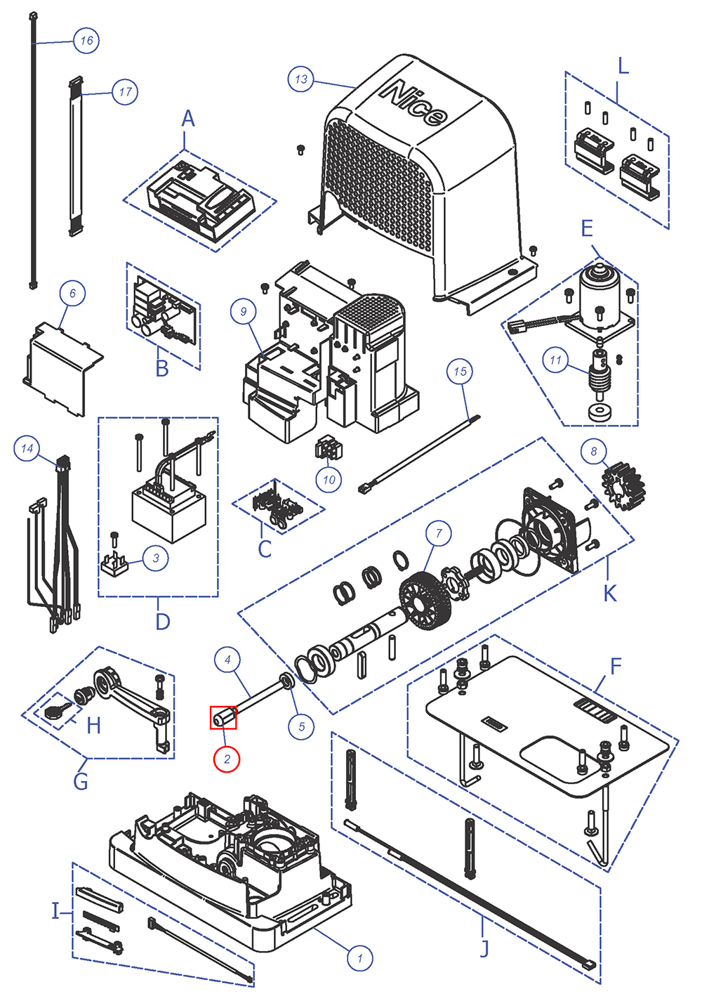 PD2298A0000 - uvolňovací objímka, vložka odblokovací pro pohony Nice RBS400, RBS600, RBS600HS.