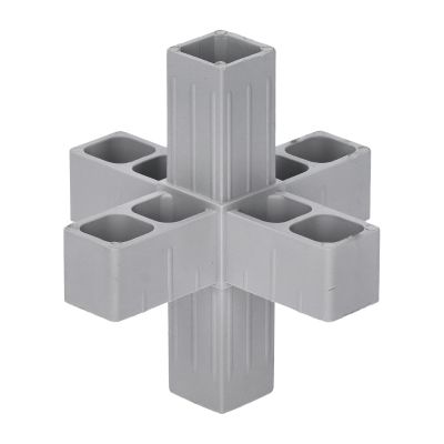 Plastová spojka šedé barvy pro spojení čtyřhranných hliníkových profilů, vhodná do profilu velikosti 25 x 25 x 2 mm. Vhodné např. pro stavbu regálů, stolů apod. Takto spojené profily mají vysokou pevnost a kompaktní vzhled. Spojku je nutné do profilu zatloukat gumovou nebo dřevěnou palicí.