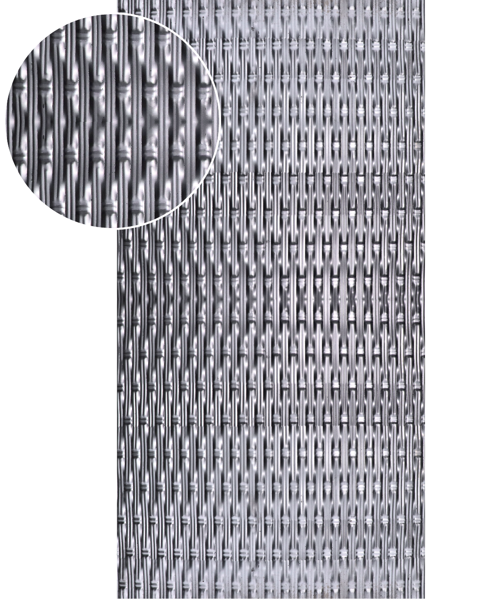 3155 - plechový ornament, délka 1000 mm, šířka 500 mm, tl. 0,6 mm, lisovaný vzor "ratan" s 3D efektem, bez povrchové úpravy.