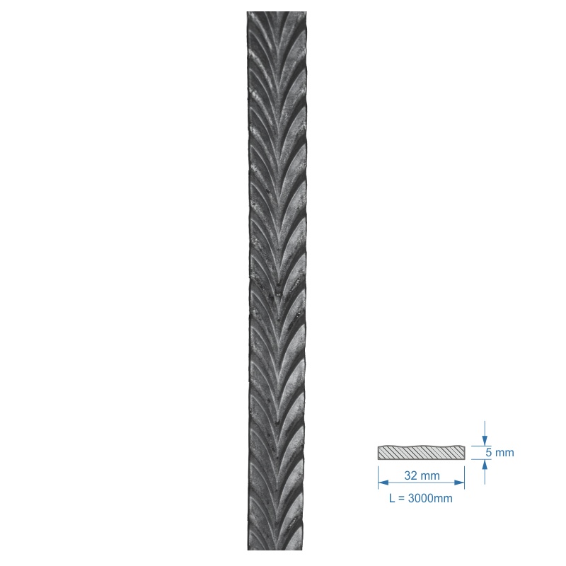 EUROBYT-CB / KOVANÉ VÝROBKY A POLOTOVARY / Zdobené profily / Ploché tyče - pásoviny / plochá tyč vzorovaná 3006.1