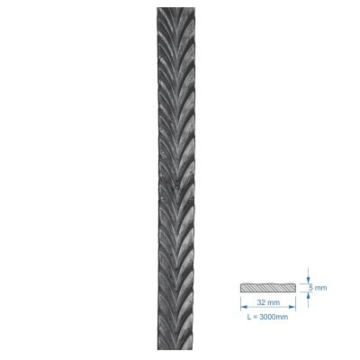 3006.1 - plochá tyč vzorovaná, materiál 32 x 5 mm, dodáváme v délce 3 m, uvedená cena je za 1 ks.