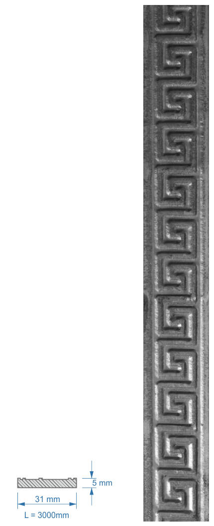 3006.2 - plochá tyč vzorovaná , materiál 31 x 5 mm, dodáváme v délce 3 m, cena je uvedená za 1 ks.