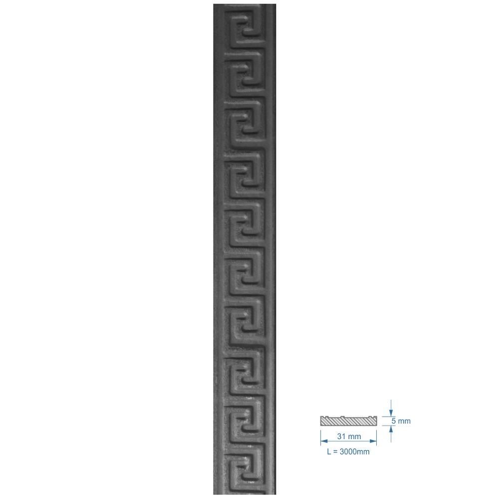 EUROBYT-CB / KOVANÉ VÝROBKY A POLOTOVARY / Zdobené profily / Ploché tyče - pásoviny / plochá tyč vzorovaná 3006.4