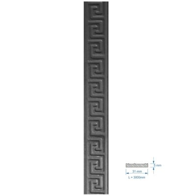 3006.4 - plochá tyč (madlovina) vzorovaná 31 x 5 mm, délka 3 m. Uvedená cena je za 1 ks.
