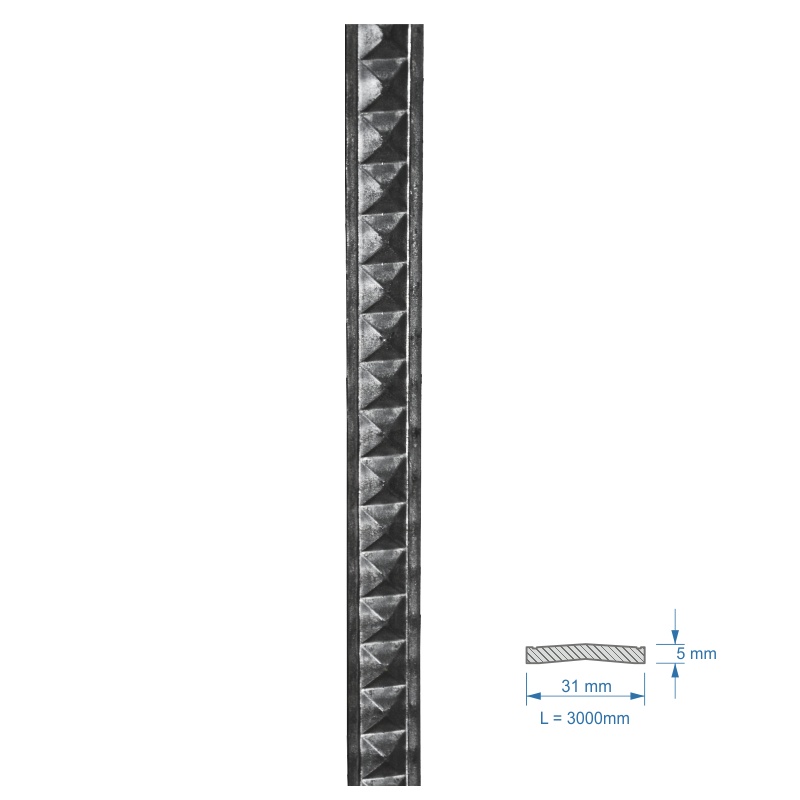 EUROBYT-CB / KOVANÉ VÝROBKY A POLOTOVARY / Zdobené profily / Ploché tyče - pásoviny / plochá tyč vzorovaná 3006.5