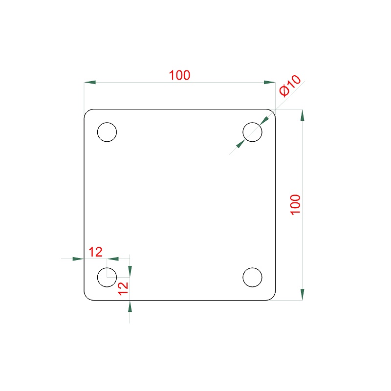 Ocelová plotna svařovací univerzální 100 x 100 x 8 mm, předvrtané otvory průměru 10 mm, černá bez povrchové úpravy.