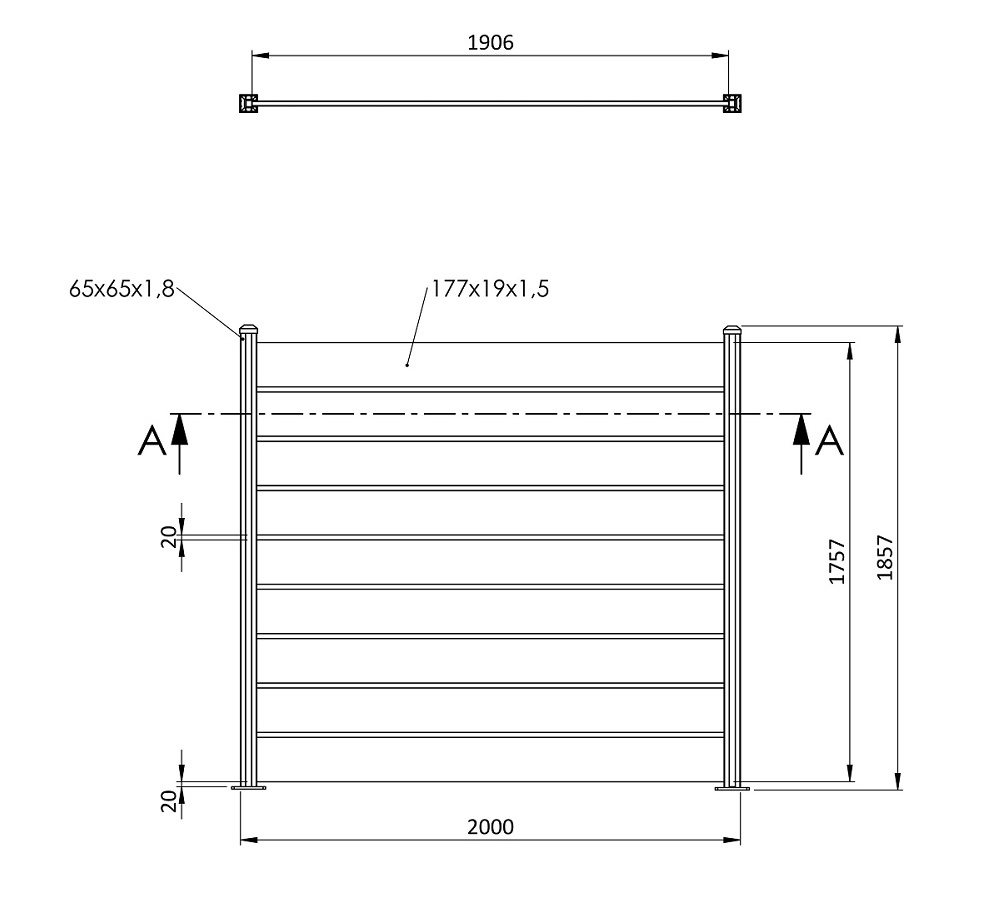 Hliníkový plotový dílec vyrobený z kvalitní hliníkové slitiny 6063-T5. Plotové pole tvoří hliníkové lamely 177,5 x 19,7 x 1,5 mm a sloupky s drážkami, do kterých se lamely zasouvají. Tím je zajištěna pevná, stabilní a esteticky čistá montáž bez viditelných spojů. Ostatní drážky na sloupku lze zakrýt krycí lištou. Úpravou lamel je možné zmenšit šířku plotového pole.
