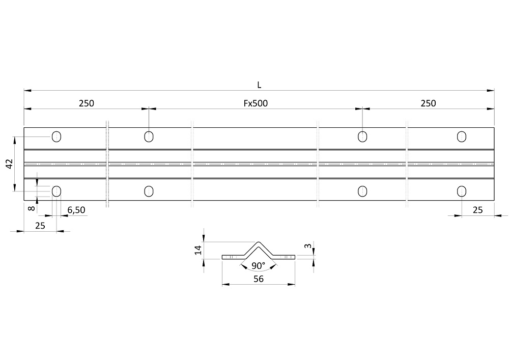 C906IX - nerezový pojezdový profil "V" Combi Arialdo pro posuvné brány. Materiál nerez AISI 304 bez povrchové úpravy.