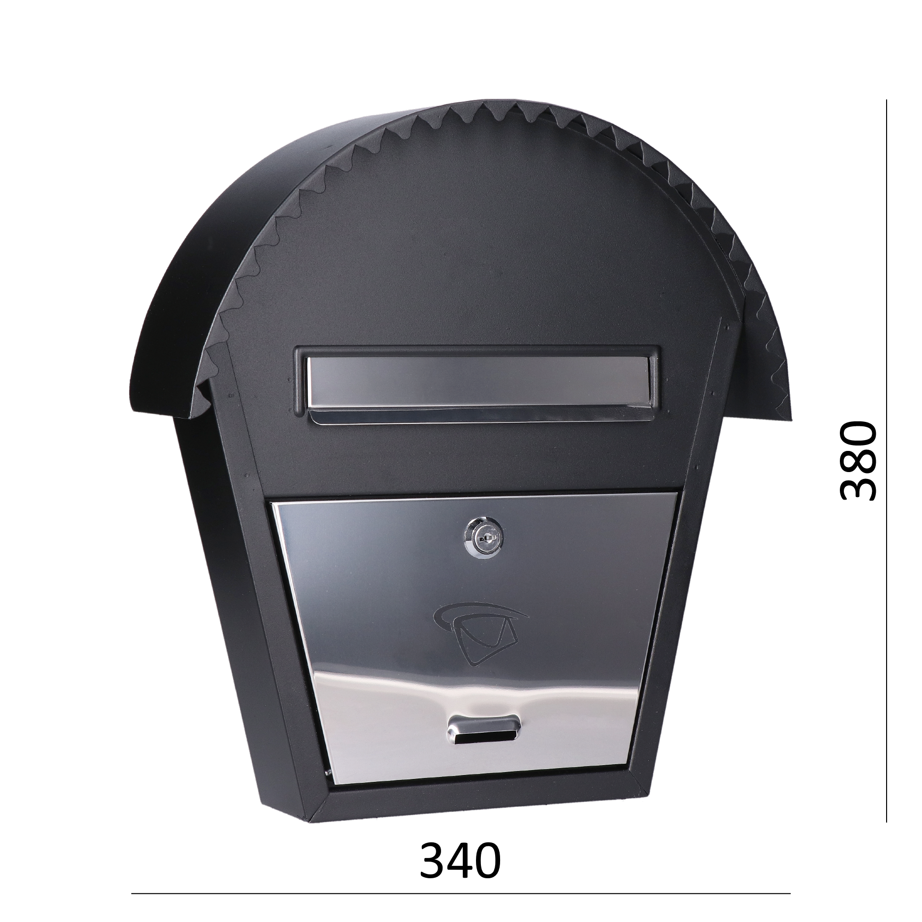 E-LUX5 - poštovní schránka nerez / černá, leštěná nerez AISI430. Je vhodná do venkovního prostředí.