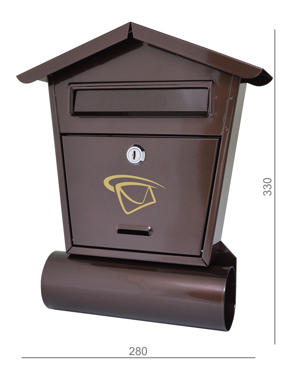 Poštovní schránka se stříškou, barva hnědá. Je vhodná do venkovního prostředí.