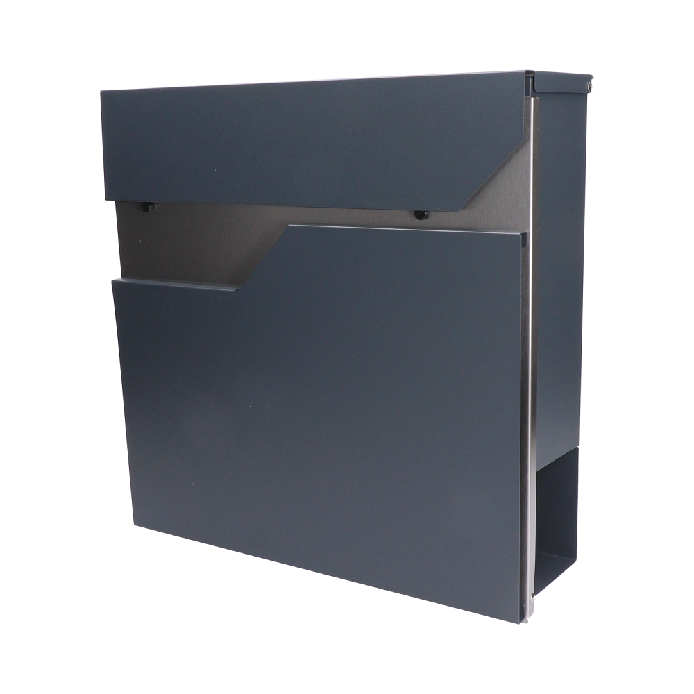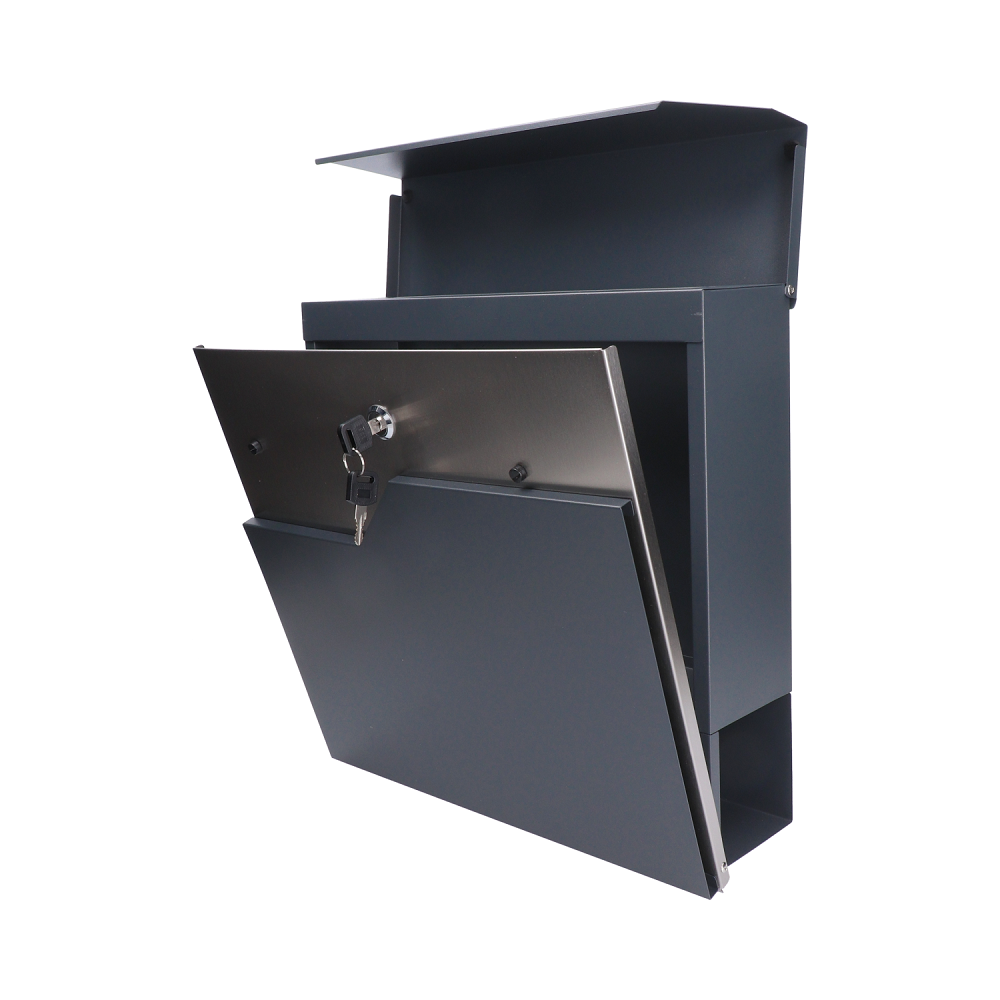 Poštovní schránka v kombinaci materiálu nerez AISI410 a pozinkované oceli v barvě antracit RAL 7016. Kvalitní materiály, ze kterých je schránka vyrobená, zaručují odolnost vůči povětrnostním podmínkám a dlouhou životnost. Výborně řešený horní kryt chrání korespondenci i zámek před vlhkostí. Dolní část schránky je určená pro noviny a letáky. Ze zadní strany schránky jsou montážní otvory, což umožňuje jednoduchou a rychlou montáž. Součástí balení jsou 2 klíče, montážní šrouby a gumové rozpěrky. Schránka je vhodná do venkovního prostředí.