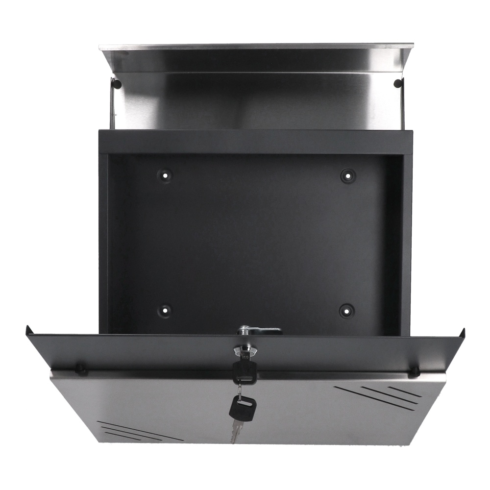 Poštovní schránka z pozinkované oceli s práškovým nástřikem v barvě antracit RAL 7016 a nerezi natural. Kvalitní materiál, ze kterého je schránka vyrobená, zaručuje odolnost vůči povětrnostním podmínkám a dlouhou životnost. Výborně řešený horní kryt chrání korespondenci i zámek před vlhkostí. Dolní část schránky je určená pro noviny a letáky. Ze zadní strany schránky jsou montážní otvory, což umožňuje jednoduchou a rychlou montáž. Součástí balení jsou 2 klíče, montážní šrouby a gumové rozpěrky. Schránka je vhodná do venkovního prostředí.