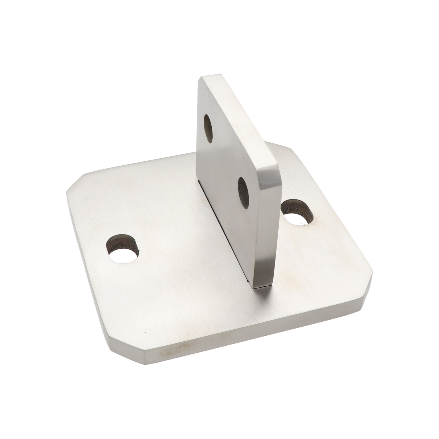 Kotvící příruba k vypalovaným sloupkům, šířka 100 mm, výška 8 mm, 2 otvory, materiál broušená nerez AISI 304.