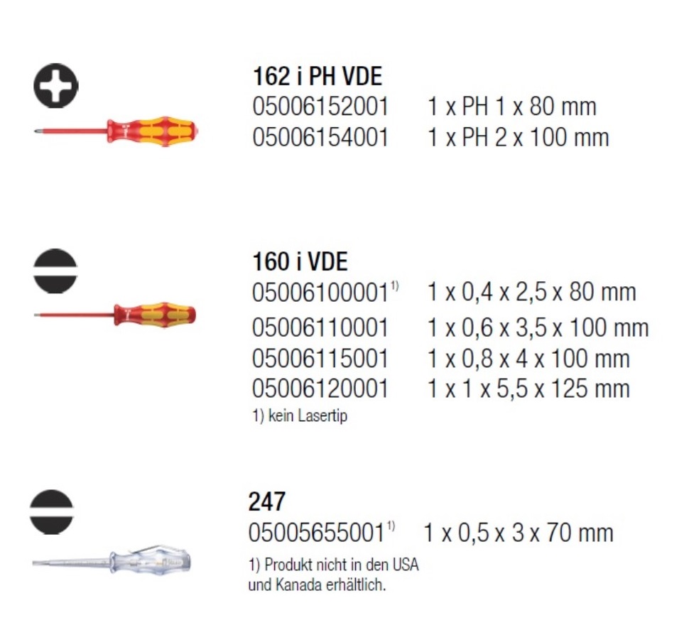 Sedmidílná profi sada PH šroubováků (plochý), izolováno pro bezpečnou práci až do 1 000 voltů. S rukojetí Kraftform Plus pro příjemnou ergonomickou práci. Tvrdé úchopové zóny pro vysokou pracovní rychlost, měkké úchopové zóny pro přenos vysokého točivého momentu. S identifikátorem nářadí Take it easy - barevné označení podle profilů a velikostí. Šestihranná ochrana proti odkutálení. Částečně profil Lasertip pro lepší držení v hlavě šroubu. Sada obsahuje zkoušečku a držák.