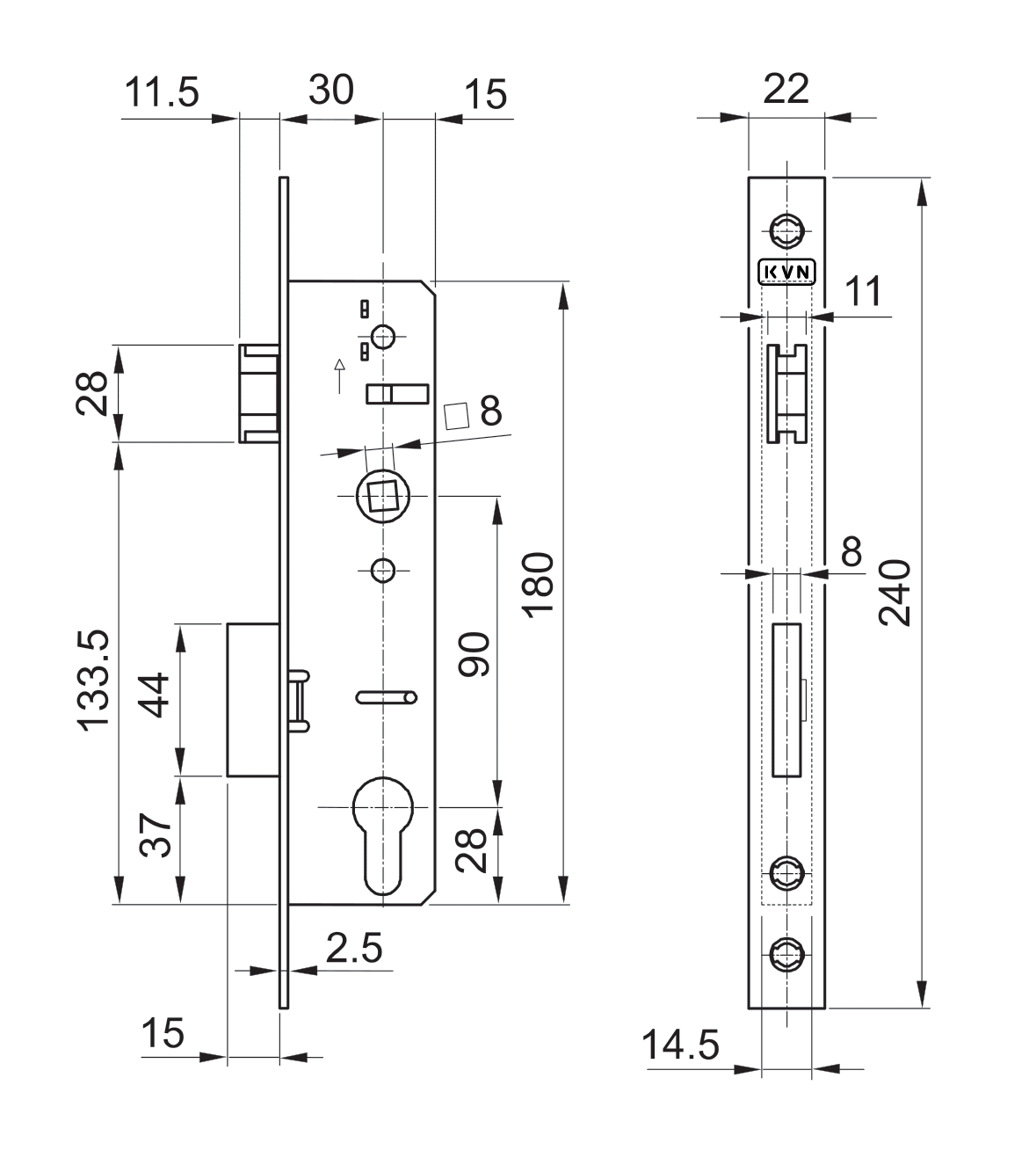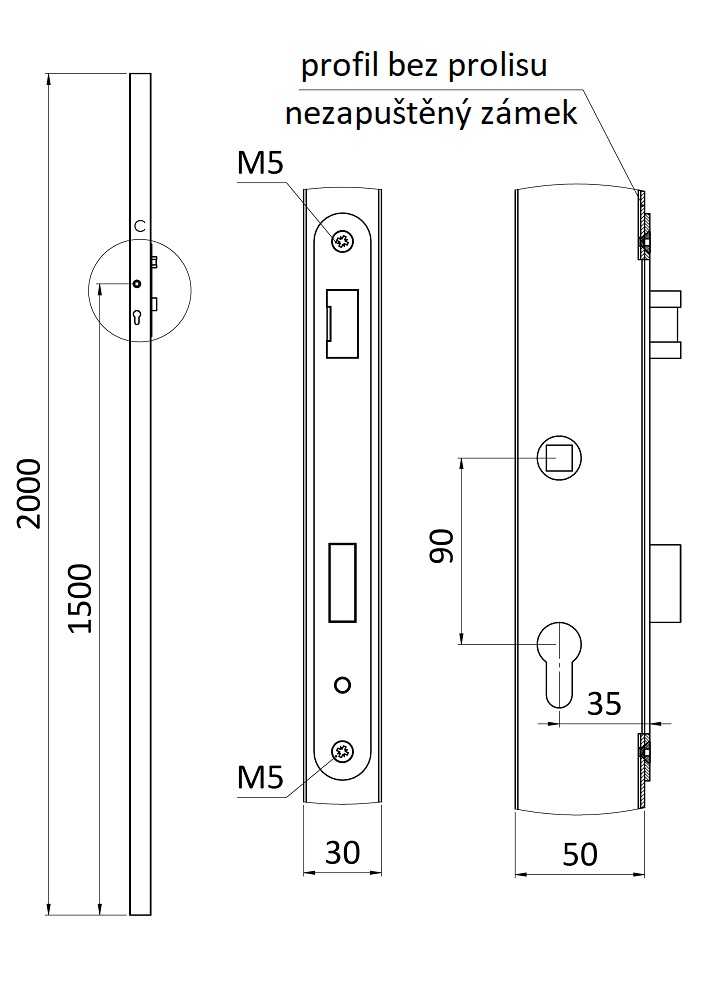 Profil 50 x 30 x 1,5 mm, délka 2 m, zámek s roztečí 90 mm, vhodné pro rám branky, bez povrchové úpravy. Zámek nemá prolisovaný profil pro zapuštění. Oboustranné použití zámku.