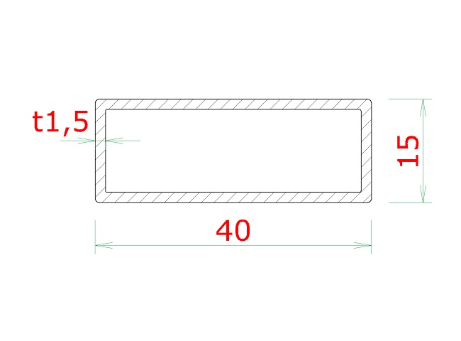 Uzavřený obdélníkový nerezový jekl 40 x 15 x 1,5 mm, materiál broušená nerez K320/AISI304.
