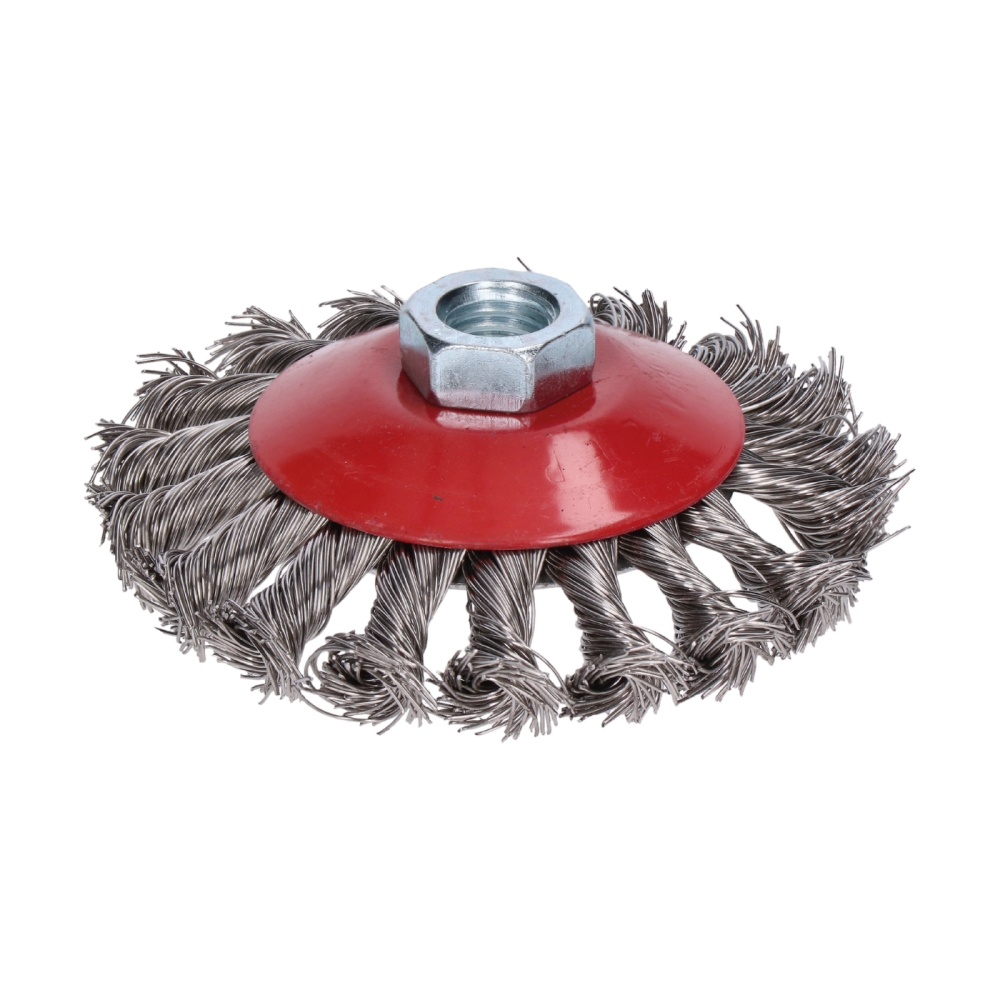 PROTECO kartáč miskový copánkový 100 mm x M14, nerezový.