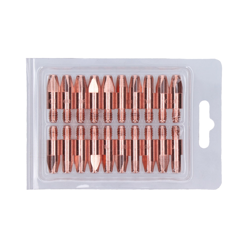 E-Cu je zkratka pro elektrickou měď. Tento materiál je pro proudové špičky ideální, protože má vynikající elektrickou vodivost, zajišťuje efektivní přenos svařovacího proudu. Dálě má dobrou tepelnou vodivost - odvádí teplo vzniklé při svařování a prodlužuje životnost špičky. Je odolná proti opotřebení, díky své tvrdosti odolává abrazivnímu působení tavícího drátu.