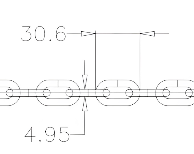 Řetěz pro řetízkový pohon 1:4, speciálně navrženo pro řetězové kladkostroje. Materiál pozinkovaná ocel.