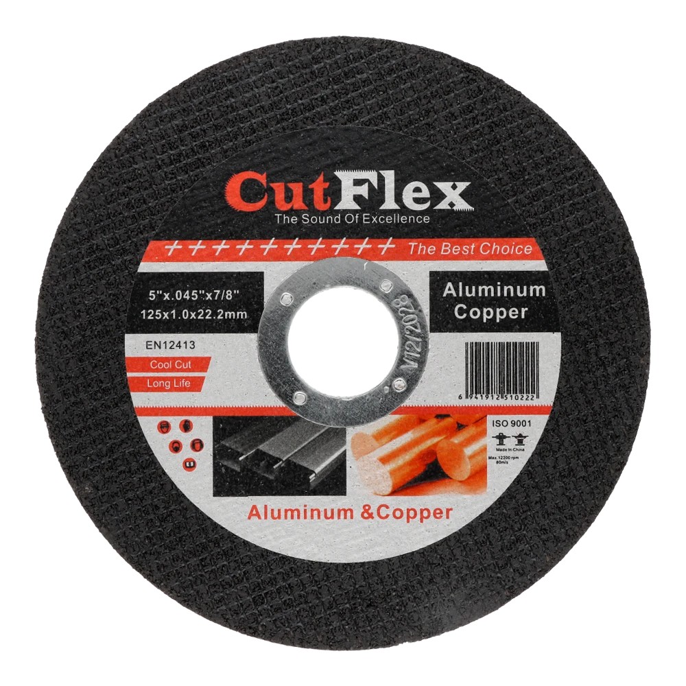Řezný kotouč 125 x 1,0 x 22,2 mm určený na řezání hliníku, mědi a jiných neželezných kovů.