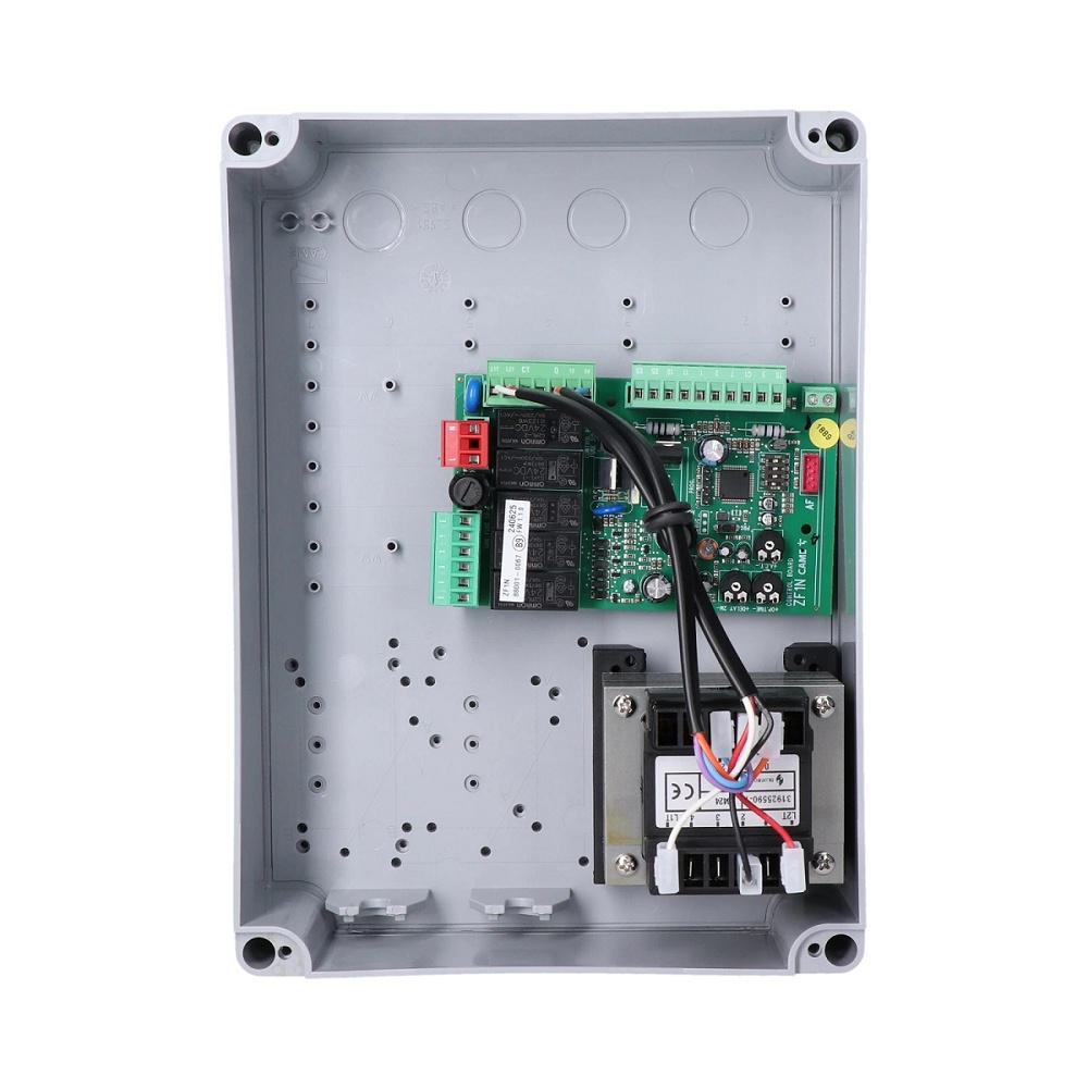 ZF1N - řídicí jednotka pro 234V pohony dvoukřídlových bran CAME ze série ATI, FERNI, KRONO a FAST. Nahrazuje starší modely ZF1 a ZA4. Součástí elektroniky je dvoukanálový rádiový dekodér a je dodávána s transformátorem. Robustní plastový box zajišťuje ochranu komponentů a umožňuje jednoduchou instalaci.