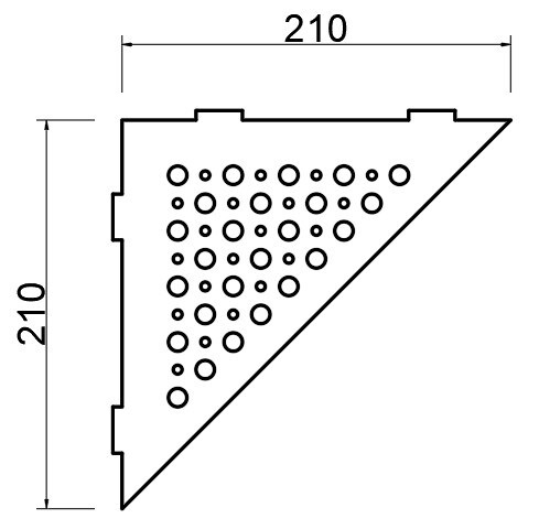 Nerezová rohová police do spár, rozměr 210 x 210 mm, tl. 2 mm, materiál broušená nerez K320/AISI304....Ukaž celý popis >