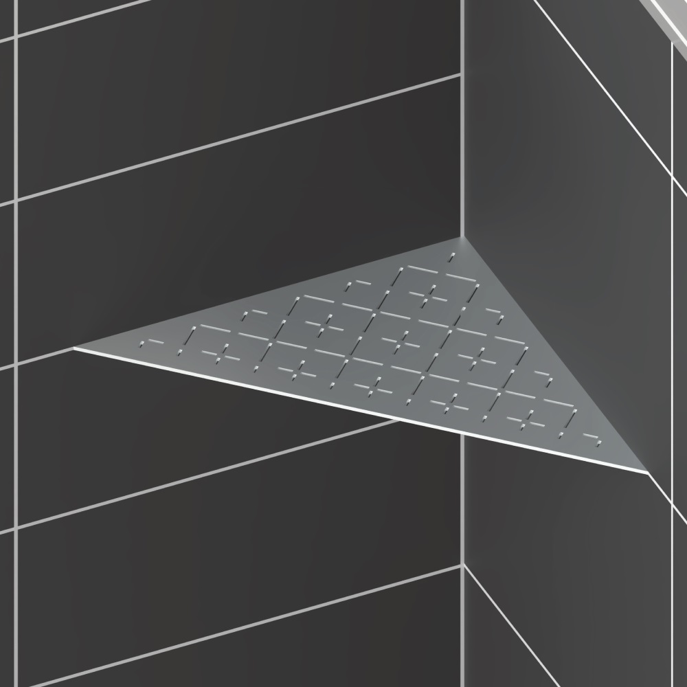 EUROBYT-CB / BYDLENÍ, ZAHRADA / Nerezové bytové doplňky / rohová police do spár SSP-06, broušená nerez