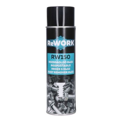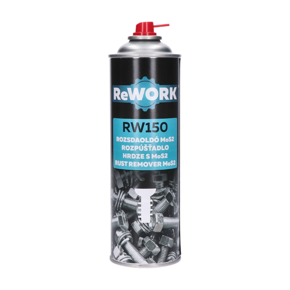 RW150 - speciální rozpouštědlo rzi - odrezovač ve spreji, balení 500 ml. Výborná schopnost penetrace a velká rozpouštěcí síla. Rozpouštědlo rzi s přidáním MOS/2 (molybden disulfidu) se používá k odstranění rzi a korozí z kovových povrchů a zároveň ke zlepšení mazání kovových součástek. MOS/2 je zde přidán jako mazivo, které se přilepí na kovový povrch a zajistí dlouhodobou ochranu před opětovným vznikem rzi.