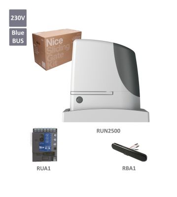NICE RUN2500P - pohon pro posuvné brány do hmotnosti 2500 kg s řídící jednotkou RUA1 a indukčním koncovým spínačem. Technologie BlueBus.