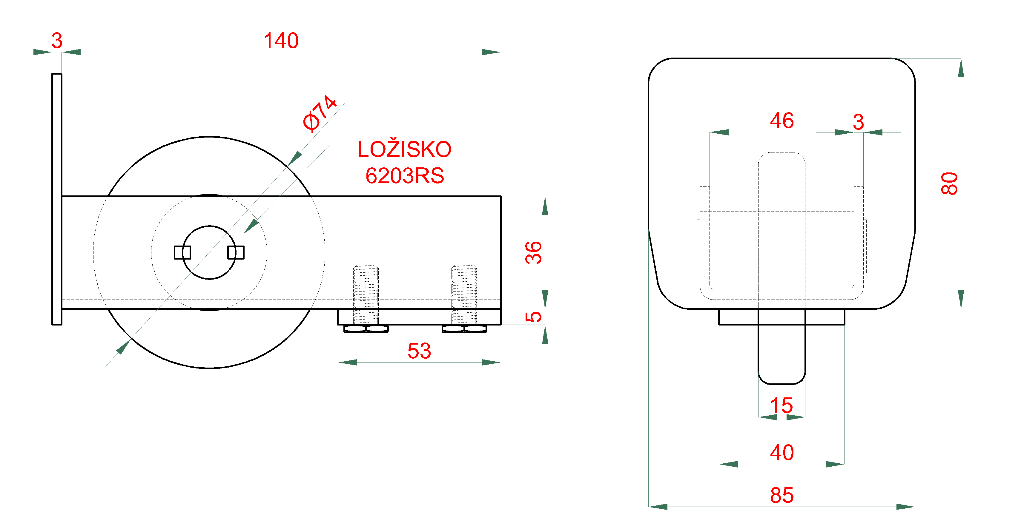 W Set85/Zn-10 - sada kování pro samonosnou bránu o průjezdu 9 m a hmotnosti 700 kg.