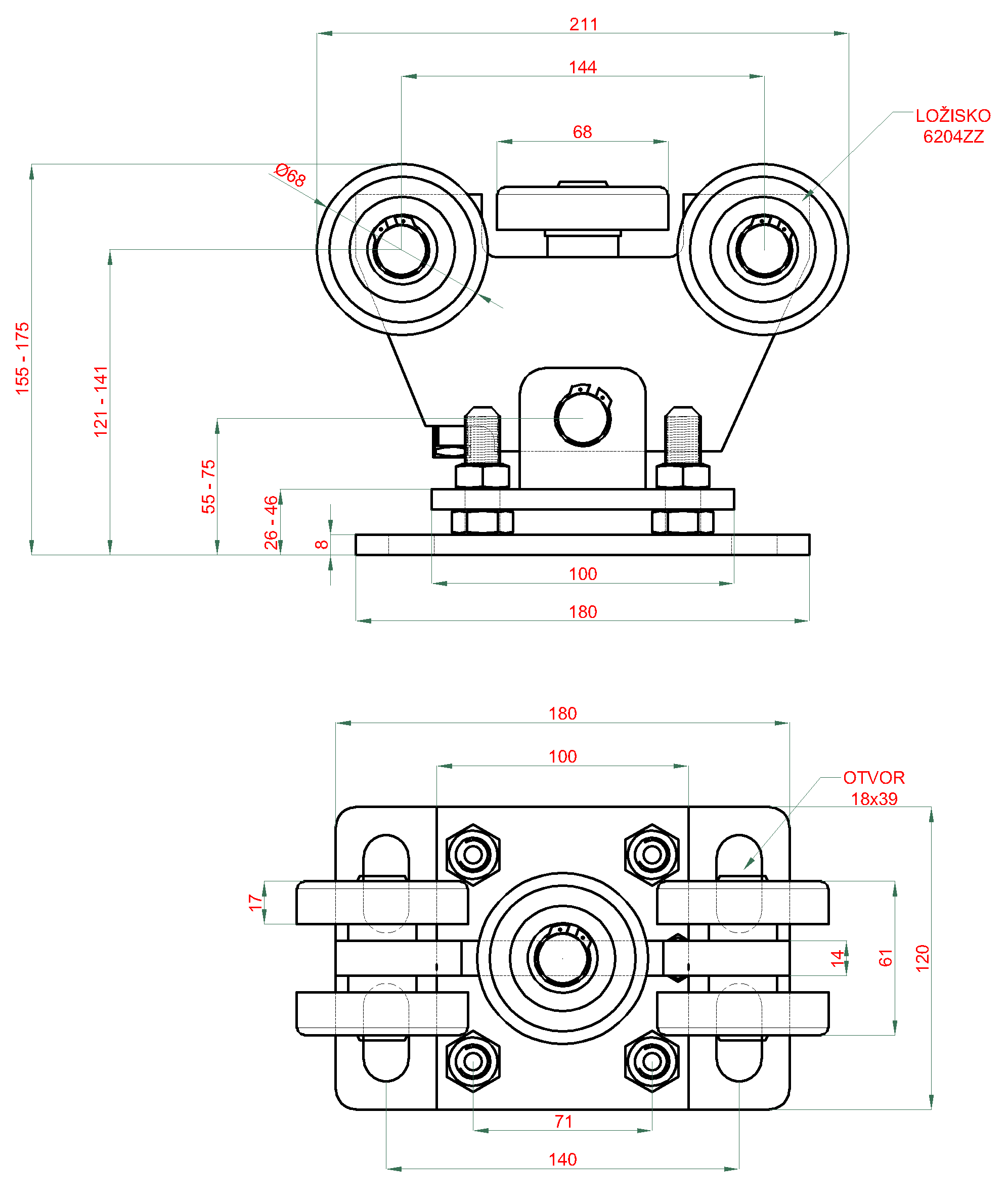 - 2 ks vozík kyvný, výškově stavitelný - W35MR/F