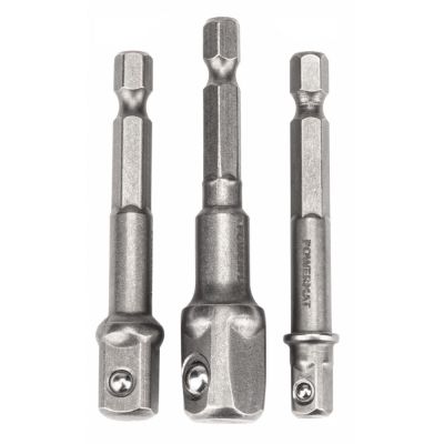Sada 3 adaptérů HEX pro nástrčné klíče 1/4“, 3/8“, 1/2“. Adaptéry vyrobené z oceli, povrch je navíc oxidovaný, což zaručuje trvanlivost a dlouhou životnost. Sada se používá v akumulátorových vrtačkách.