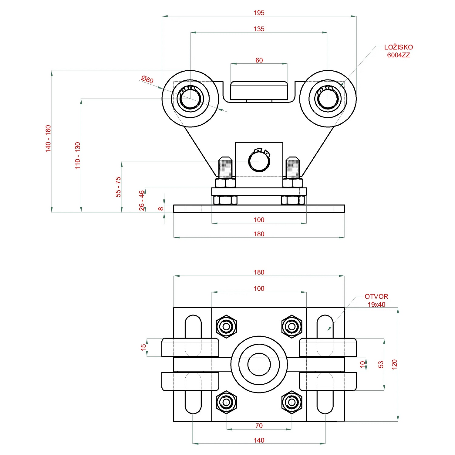 - 2 x vozík kyvný a výškově stavitelný W395P.F2