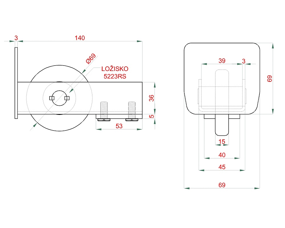Doporučená váha brány do 300 kg, šířka průjezdu do 4,5 m, kombinované díly nerez / pozink.