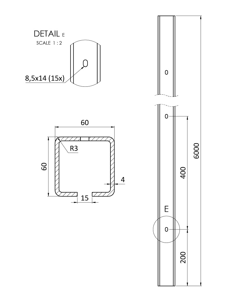 - C profil 60 x 60 x 4 mm zinkovaný, 6 m, W39/60Zn s předvrtanými otvory