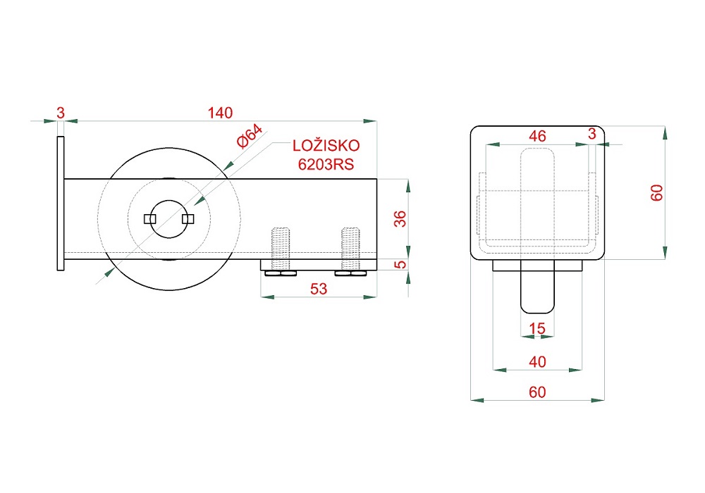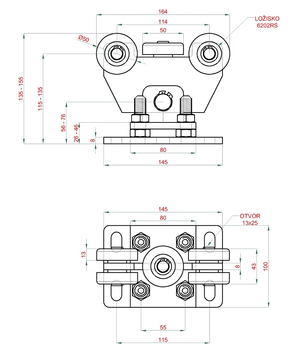 - vozík kyvný výškově nastavitelný, 2 ks, W35S/F-2 (ložiska 6202RS)