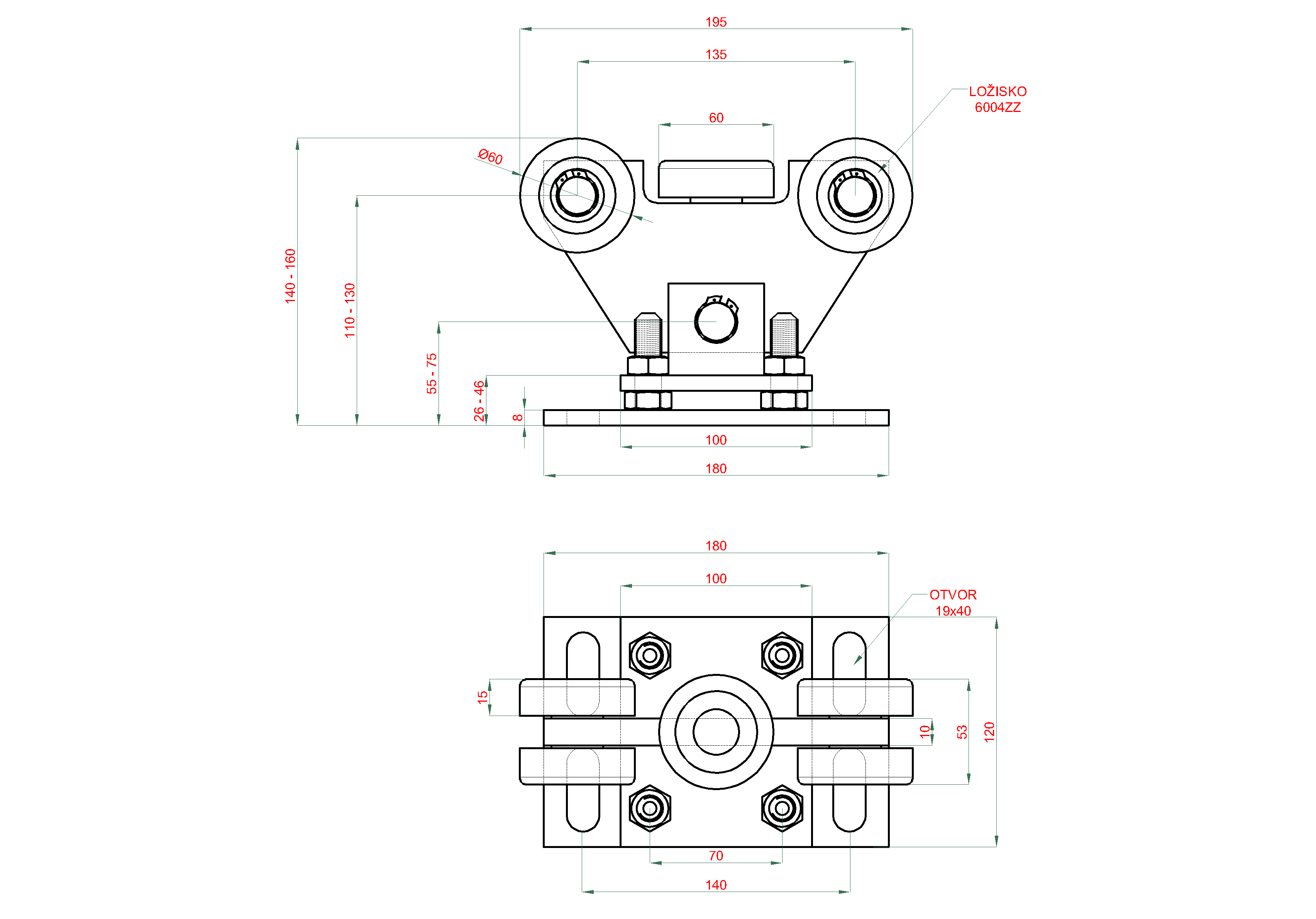• vozík kyvný s nastavitelnou deskou a dorazovým šroubem sklonu vozíku, 2 ks, W395P.F2