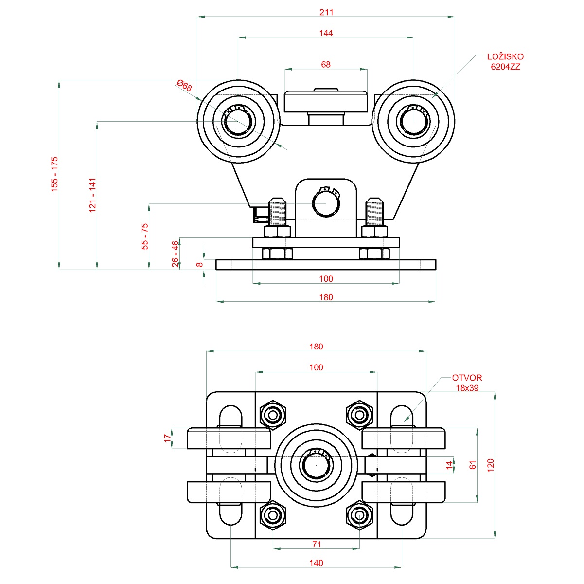 • 2 ks vozík kyvný výškově stavitelný - W35MR/F