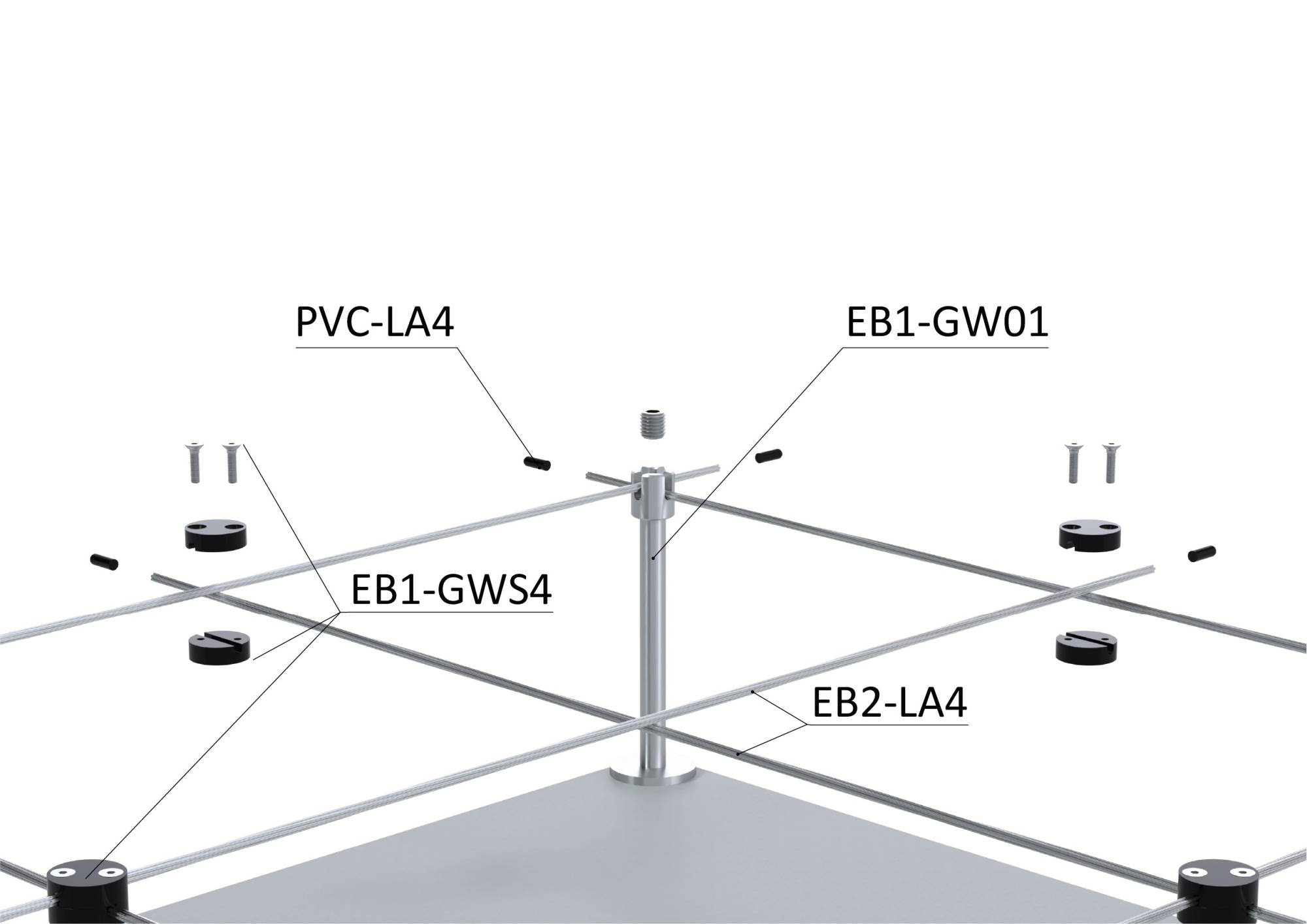- nerezovou přírubu pro uchycení lanka na stěnu EB1-GW01, 15 ks