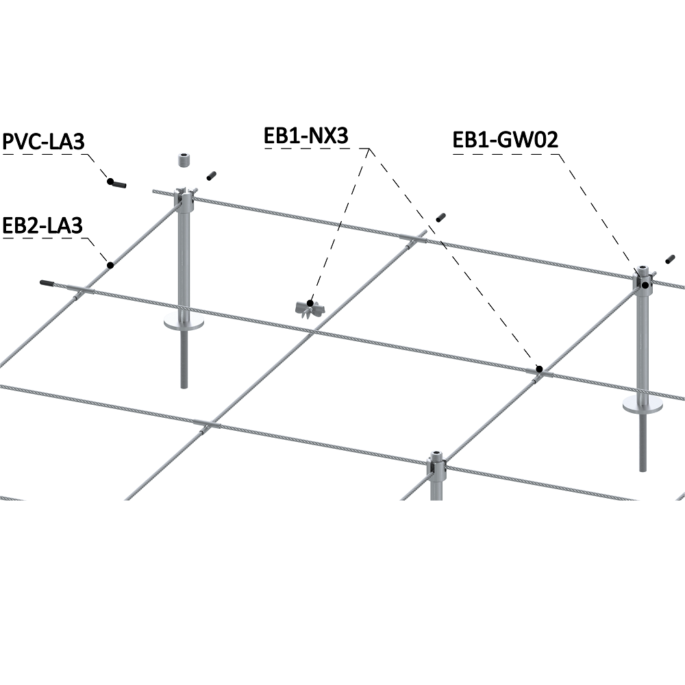 Lanková stěna pro zeleň - tzv. zelená stěna, rozměr 3 x 1 m, kompletní set. Materiál lanko ø 3 mm, nerez AISI316, úchyty lanka broušená nerez K320/AISI304 + speciální hmoždinky a nerezové křížové spojky lanka. Při sestavení lankové stěny se příruby umísťují ve vzdálenosti cca 50 x 50 cm a plastové spojky také 50 x 50 cm od sebe. Celkově tak vzniknou oka 25 x 25 cm. Tyto vzdálenosti lze měnit podle potřeby nebo prostoru na stěně.