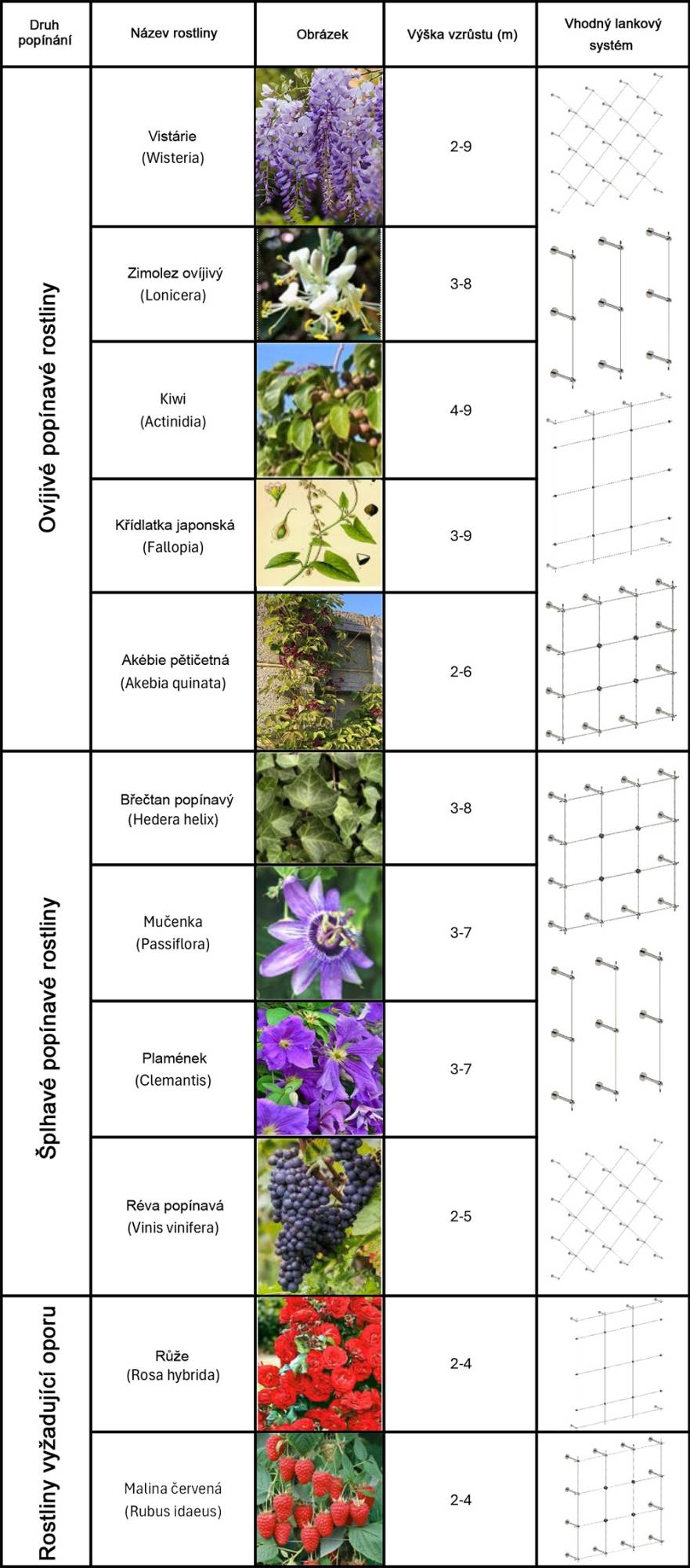 Lanková stěna pro zeleň - tzv. zelená stěna, rozměr 3 x 2 m, kompletní set. Materiál lanko ø 3 mm, nerez AISI316, úchyty lanka broušená nerez K320/AISI304 + speciální hmoždinky a nerezové křížové spojky lanka. Při sestavení lankové stěny se příruby umísťují ve vzdálenosti cca 50 x 50 cm a plastové spojky také 50 x 50 cm od sebe. Celkově tak vzniknou oka 25 x 25 cm. Tyto vzdálenosti lze měnit podle potřeby nebo prostoru na stěně.
