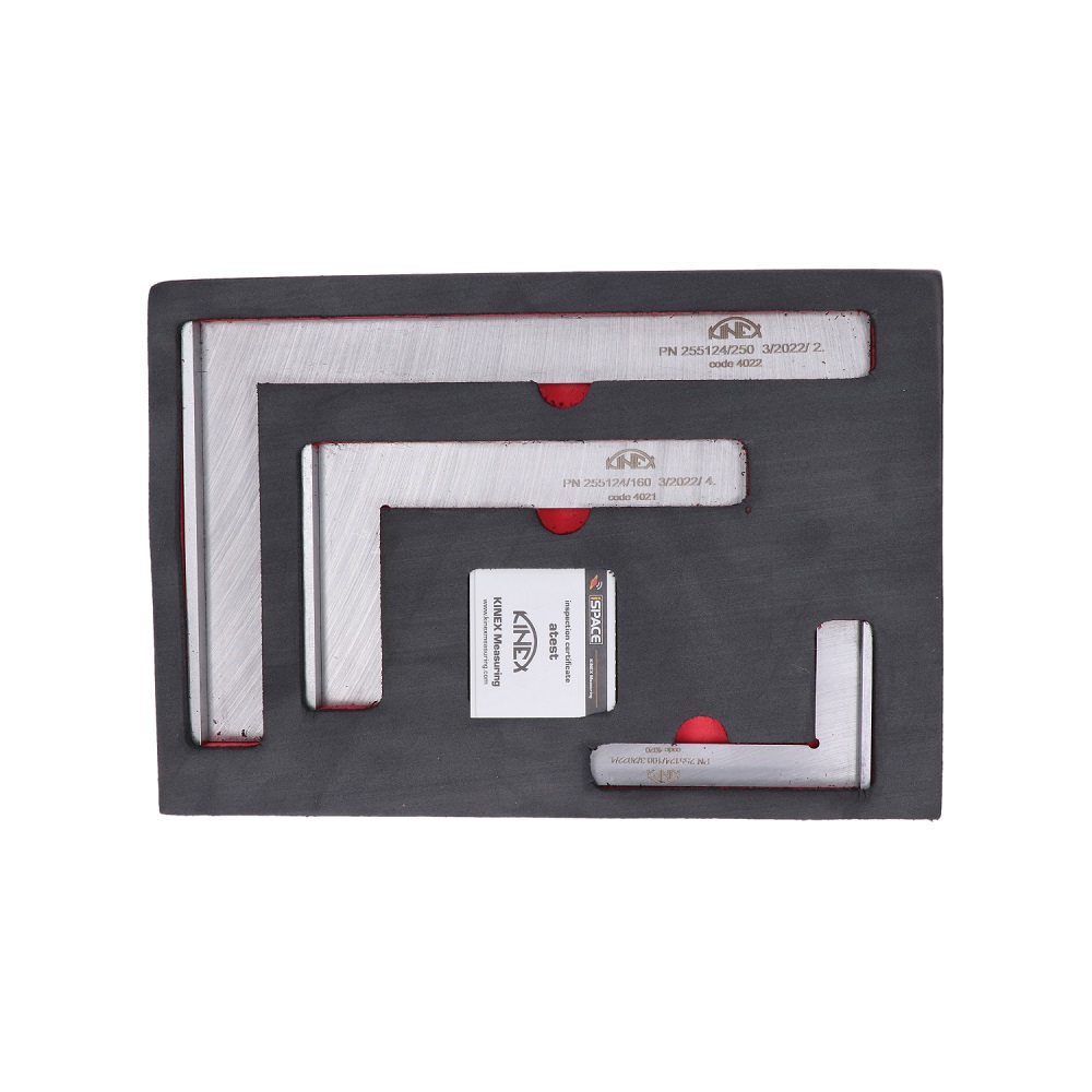 Sada zámečnických příložných úhelníků KINEX. Nová konstrukce obalu, dokonalá ochrana proti poškození při manipulaci a transportu.